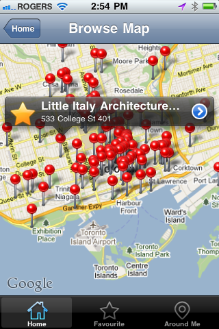 Developed using Toronto's Open Data initiative is designed for easy use for Torontonians and visitors alike. The Route-finding, "Map It" and "Around Me" features make it easy to navigate the streets of Toronto and make it simple for anyone to find their next destination.